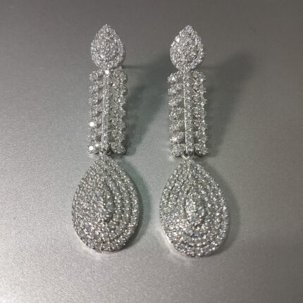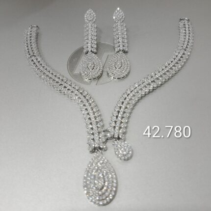 For brides who want something different, blue stone sets offer a fresh alternative. The Bridal Necklace Earrings Set with Blue Stone Diamond Finish combines blue sapphires with white zircons for a cool-toned look that stands out. These work particularly well with silver, white, or light blue wedding attire.
