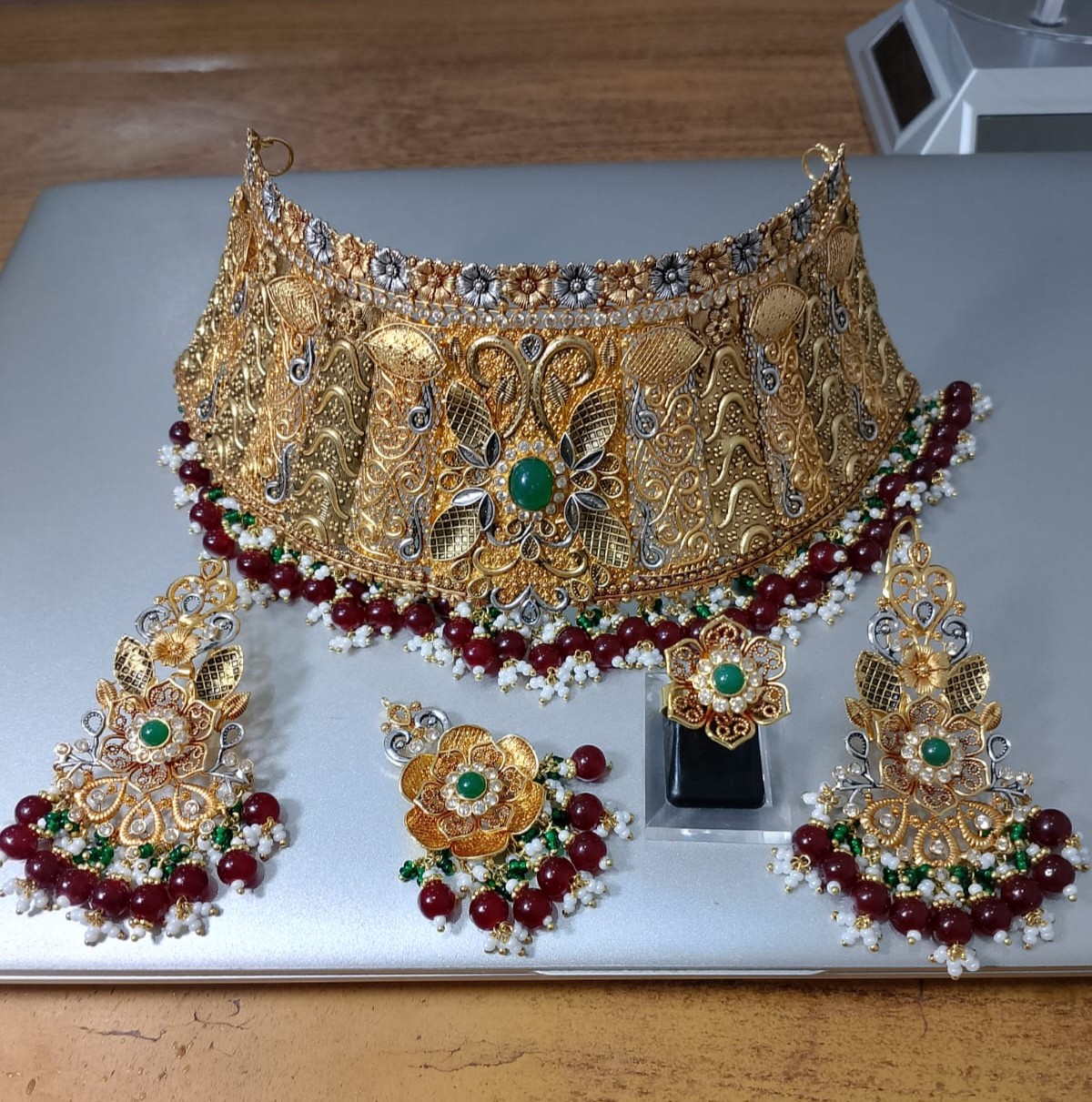 Category: Bridal Sets Tags: Zuha Jewellery Karachi bridal set, Silver 925 jewellery Karachi, emerald choker Karachi, ruby earrings Karachi, wedding jewellery Karachi, Karachi wedding set, pearl jewellery Karachi, antique gold bridal set Karachi, Bridal Jewellery Pakistan Brand: "Zuha Jewellery"