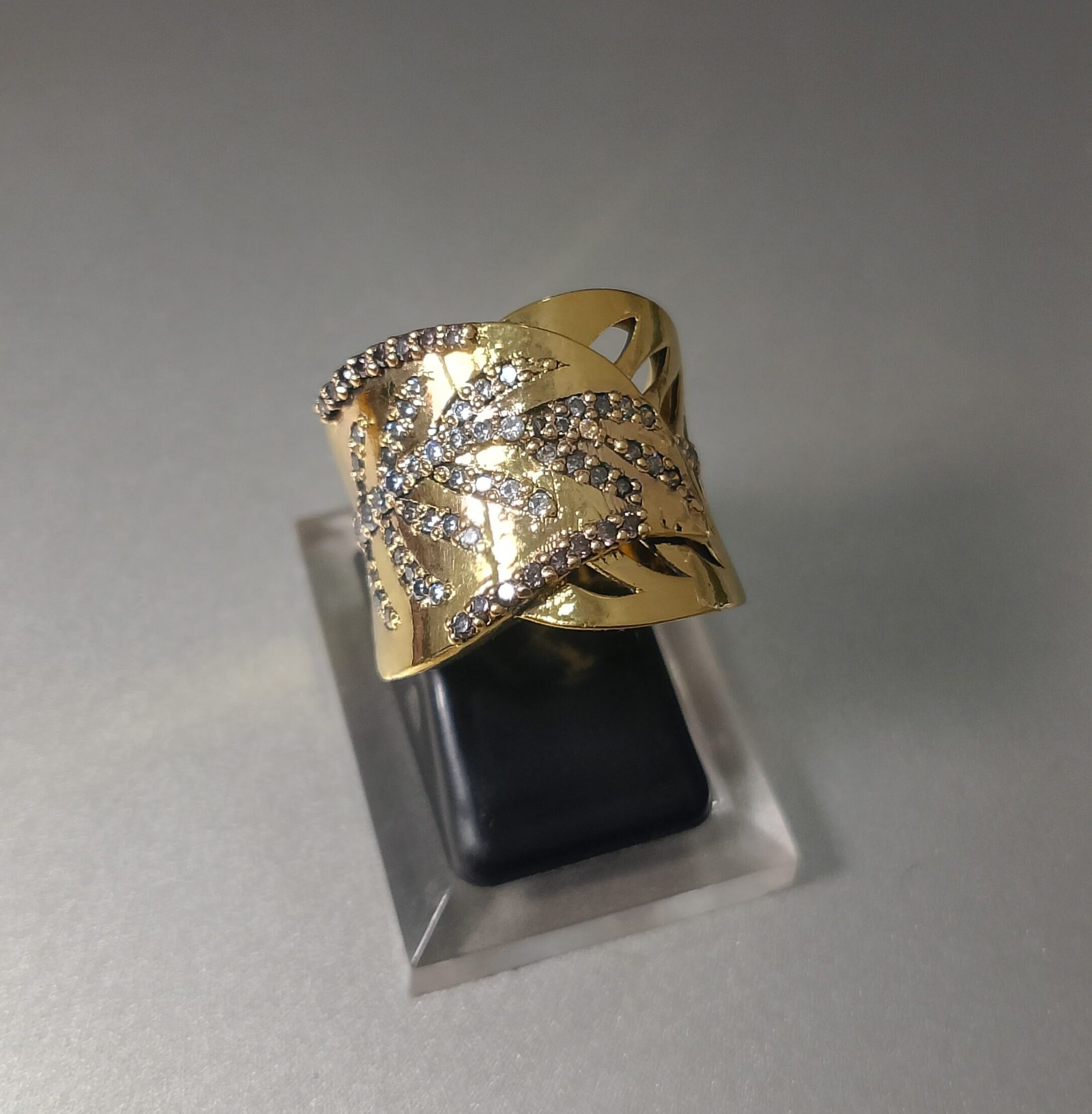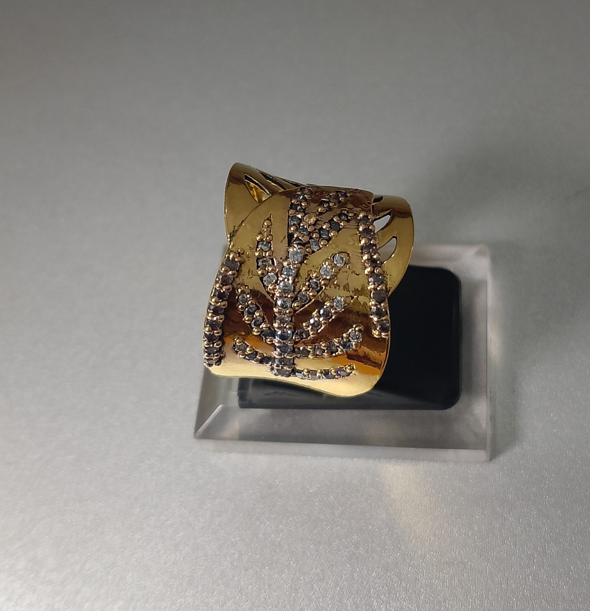 Be the first to review “This is a wide gold ring with a leaf or vine pattern set with diamonds.” Cancel reply