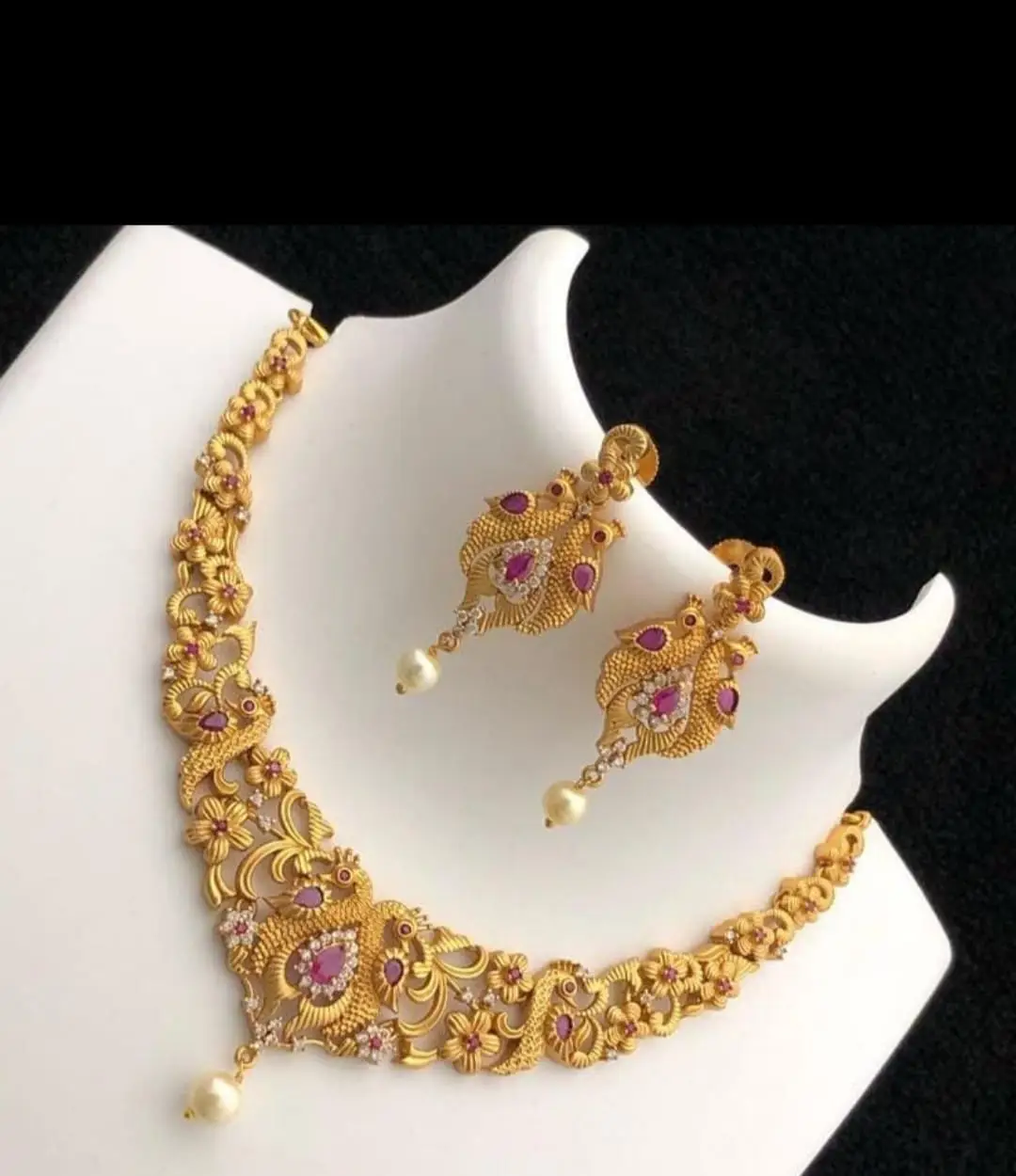 Lightweight yet royal in look, yeh jewellery set ideal hai un ladies ke liye jo chahte hain style aur grace — bina asli sona kharidne ke.