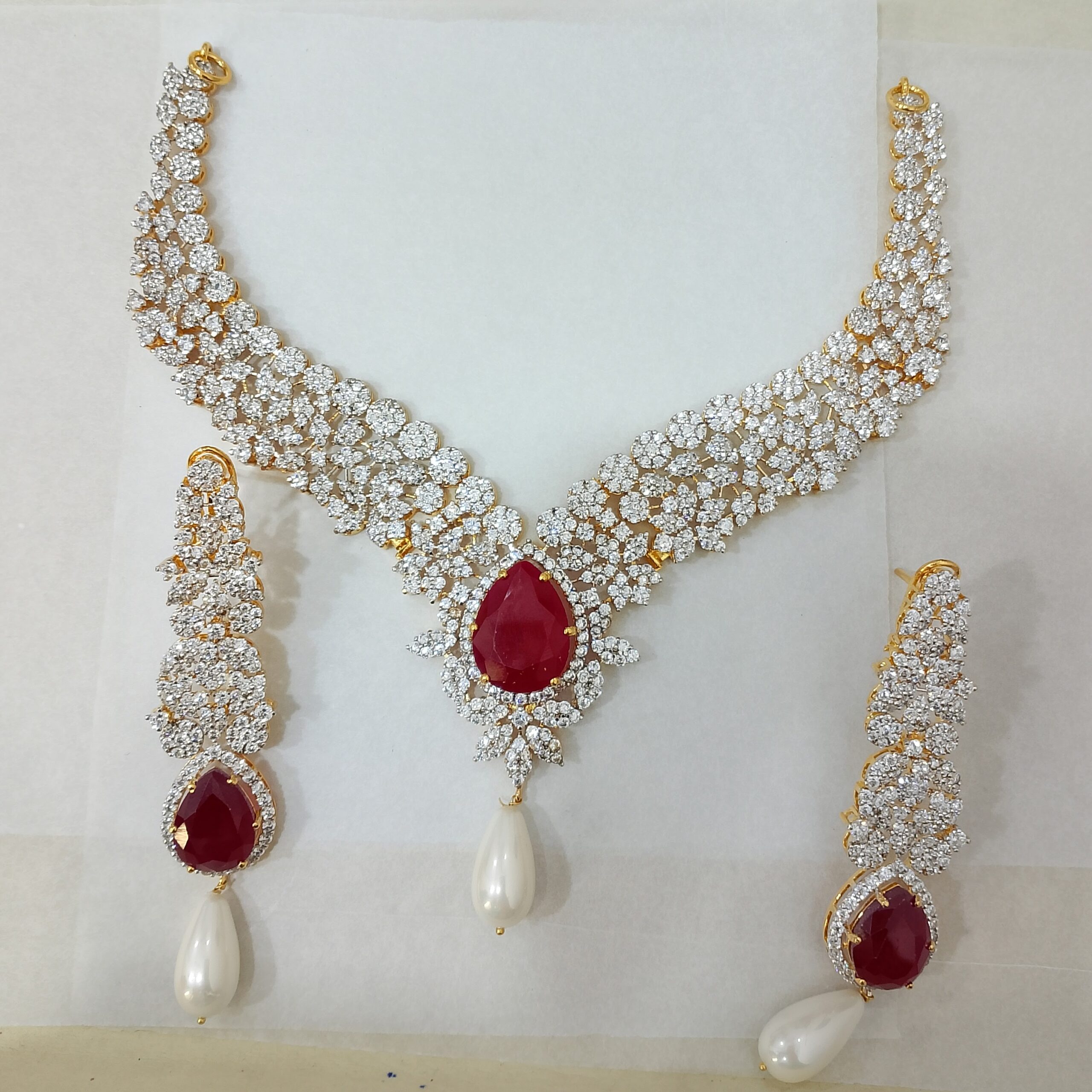 Traditional Pakistani Ruby Bridal Choker with Zircon Pearls